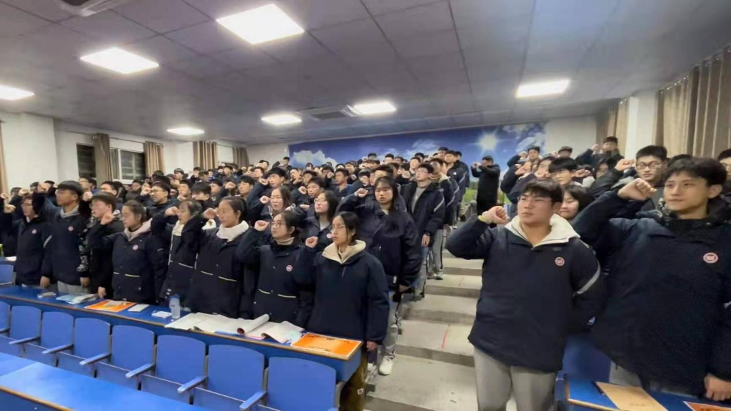 緊接著,全體高三同學進行了宣誓,他們高喊出“把決心化作智慧和力量,用行動掀開人生的新篇章!”聲音洪亮,激情飽滿,每位同學都充滿著斗志,做好了充分的準備,迎接即將到來的“一模”考試。