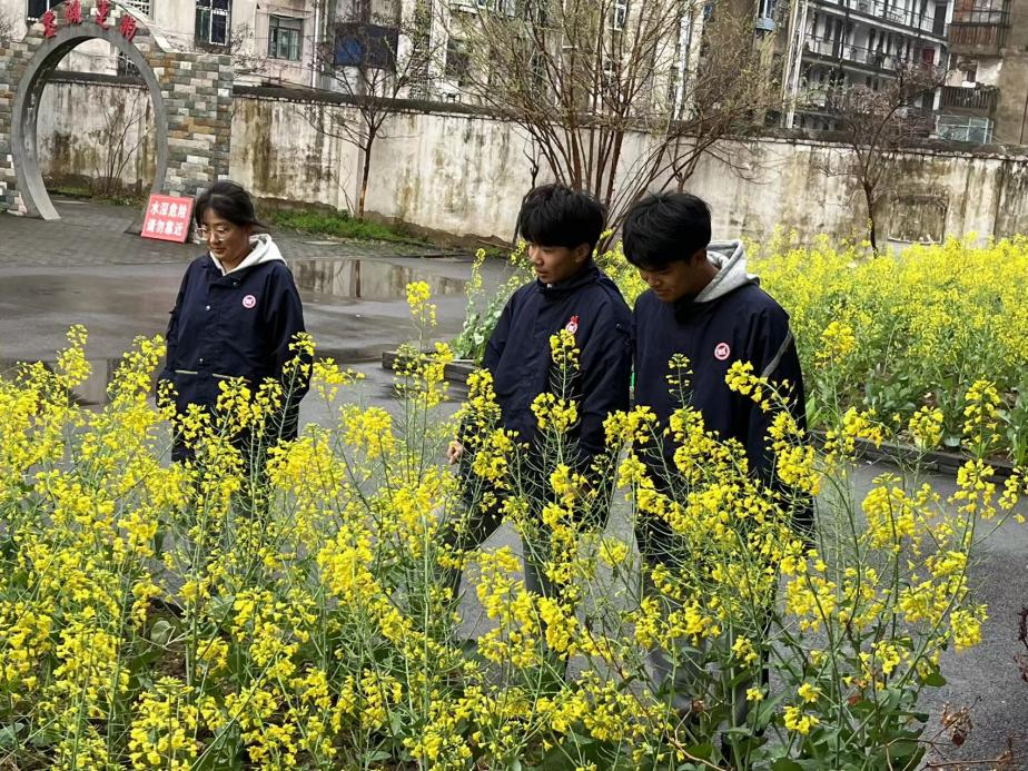 勞動教育采用“包產(chǎn)到班”的方式,每班負(fù)責(zé)一塊園地,學(xué)生們利用勞動教育課種植、除草和澆水?,F(xiàn)在油菜長勢喜人,花開滿園,成為學(xué)校一道靚麗的風(fēng)景線,蒜苗、香菜、蠶豆、豌豆也破土而出競相亮相。
