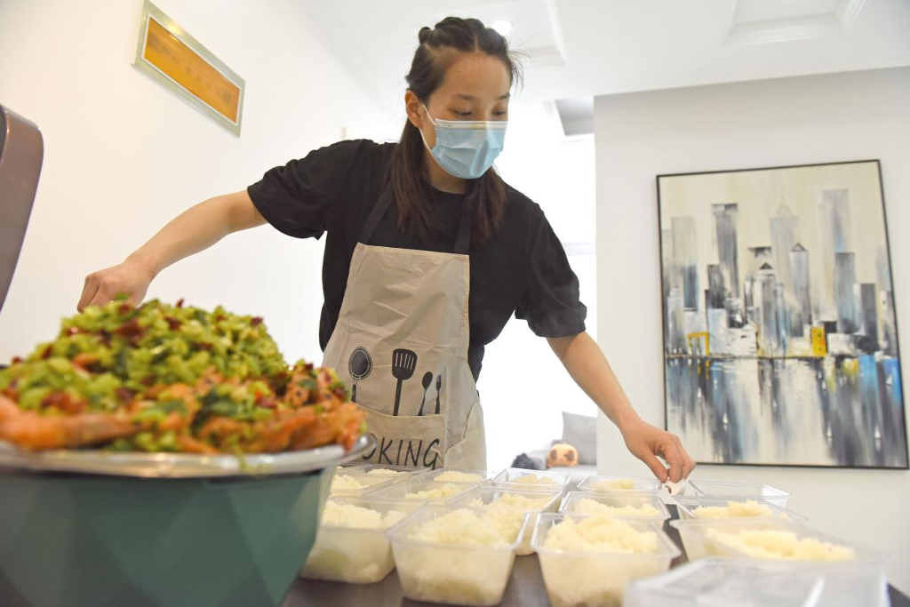 全市餐飲、飯店等生產(chǎn)經(jīng)營(yíng)場(chǎng)所按下“暫停鍵”,同為志愿者的劉云看到看到社區(qū)一線網(wǎng)格員、門衛(wèi)每天辛苦忙碌,吃不上一口熱飯,她便與丈夫商量利用空閑時(shí)間,為社區(qū)一線戰(zhàn)疫人員制作免費(fèi)愛(ài)心餐。“作為一名老師,能為抗擊疫情做點(diǎn)事兒,非常有意義,也希望通過(guò)言傳身教為學(xué)生做一個(gè)正確的示范”。