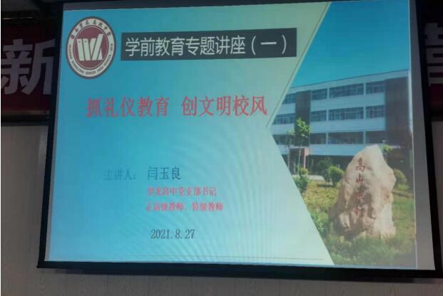 8月27日晚,主題為“抓禮儀教育,創(chuàng)文明校風”的學前專題講座在階梯教室舉行,高一全體新生積極參與學習,本次講座的主講人為閆玉良校長。